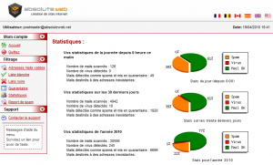 Le back office (administration) donne la possibilité de consulter les statistiques de spams et de virus.